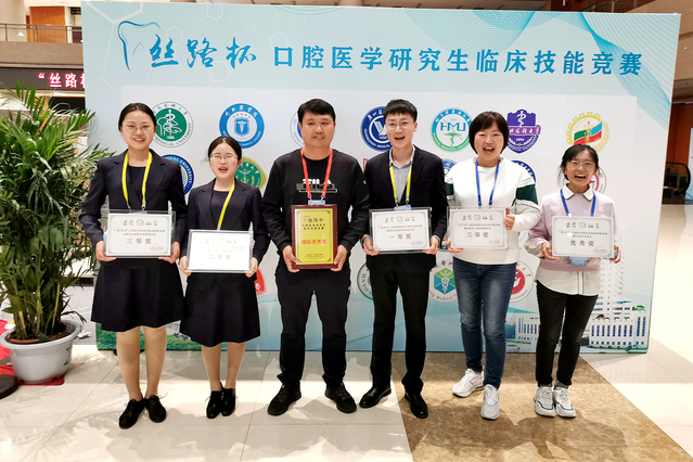 11月6日至8日,由全国医科院校研究生院联盟主办的“丝路杯”口腔医学研究生临床技能竞赛在西安举行,我校代表队在竞赛中获多个奖项。我校以团体总分第7名的成绩获得“团队综合奖”优秀奖。在单项“上磨牙全瓷冠牙体制备”项目中,2019级口腔医学专业研究生张浩获得一等奖,2020级口腔医学专业研究生唐越获得三等奖;在单项“上磨牙全瓷冠牙体制备”和“龈下刮治术”项目中,2020级口腔医学专业研究生汤小燕分别获得二等奖和优秀奖;在团体“橡皮障及二类洞预备”项目中,潍坊医学院团队获得三等奖。