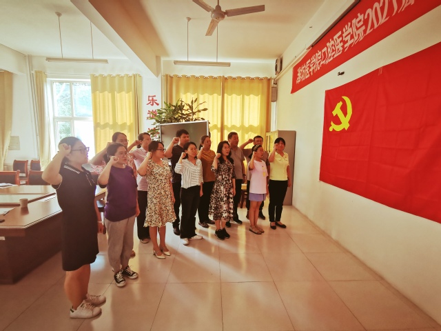 宣誓仪式由党支部书记刘媛媛担任领誓人,全体党员紧握右拳、庄严肃立,面向鲜红的党旗立下铮铮誓言。接下来的理论学习中,回顾党史,从党的奋斗历史中汲取前进力量,进一步提高政治责任感和为党的事业积极工作的自觉性,进一步坚定立足岗位、甘于奉献的信心和决心。