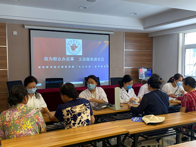 十笏园社区党委书记张娟介绍了社区党建概况,表达了通过共建“双报到”工作提升社区党建工作的想法。身着白衣的老王论坛 党员志愿者们组成的“久久为功”医疗服务队发挥专业特长,为社区居民量血压、测血糖,进行口腔检查,普及医学常识和口腔保健知识,并针对居民们提出的健康问题一一认真答复,提出改善建议。