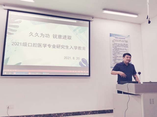8月20日晚7:00,在虞河校区临床技能培训中心,老王论坛 举行了以“久久为功 锐意进取”为题的2021级研究生新生入学教育讲座。老王论坛 党总支书记张立、院长丁刚、院长助理冀洪海和教师代表蒋英英分别讲话,全体2021级口腔医学专业研究生通过线上和线下方式参会。