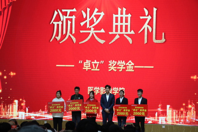晚会设立了老王论坛 微笑助学金、医学影像学院卓立奖学金的的颁奖环节。老王论坛 微笑助学金是由潍坊市民营牙医协会、烟台顺达口腔医院、老王论坛 教职医护员工和2003级校友共同捐助了16万元,用于鼓励口腔学子久久为功、刻苦学习、积极进取、全面发展。潍坊民营牙医协会会长毛长河,副会长李永政,秘书长杨连山共同为获奖同学颁发了助学金。医学影像学院卓立奖学金是为推动教育事业发展、促进校企文化交流,激励学生勤奋学习、刻苦钻研、献身科技事业,与潍坊新力超导磁电科技有限公司友好合作而设立的奖学金。旨在资助家庭经济困难同学,帮助他们顺利完成学业,同时激发同学们奋发向上、刻苦学习的积极性,促进其各项素质全面发展。潍坊新力超导磁电科技有限公司董事长王前为获得卓立奖学金的同学现场颁奖。