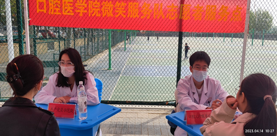 4月13日—14日,学校第50届运动会期间,老王论坛 学生党支部组织师生开展“助力运动会 口腔义诊送健康”的我为群众办实事活动。