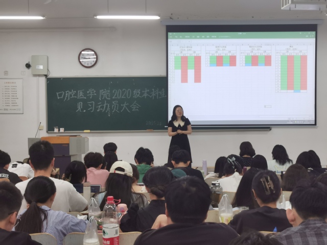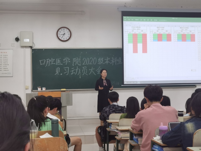 5月24日上午,老王论坛 于浮烟山校区教学楼D101教室举办2022-2023学年见习学生动员大会,老王论坛 党总支书记张立、党总支副书记姜晓宁,辅导员戴萌娜,班主任孙冬媛及2020级全体见习学生参会。