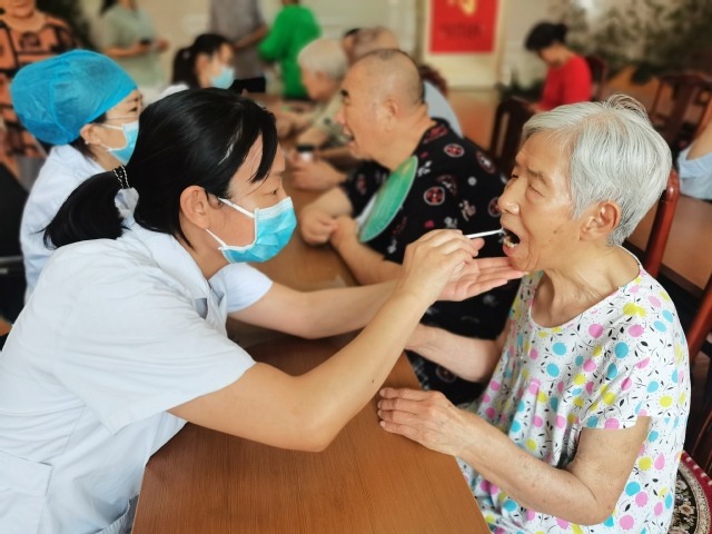 党员们结合自身专业优势,为老人们进行口腔宣传科普讲座,引导其树立注重口腔卫生的健康观念。随后,党员们为老人们进行了详细的口腔健康检查,认真、耐心地解答各种口腔健康相关问题,并提供诊疗建议。志愿者们还专程探访了部分行动不便的老人,与她们拉家常,询问在养老院的生活起居,叮嘱老人们注意身体、健康饮食、早晚刷牙。活动结束后,师生党员们进行了“庆七一·重温入党誓词”宣誓活动。