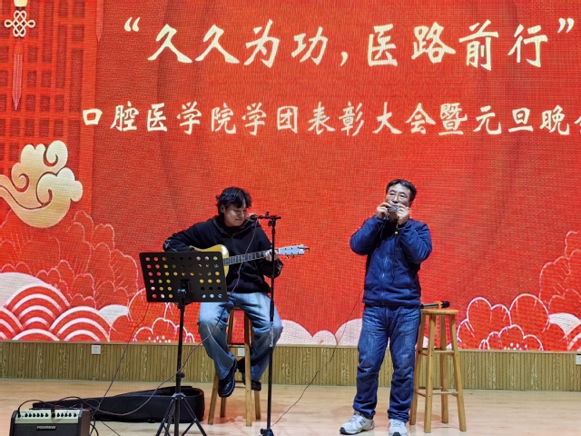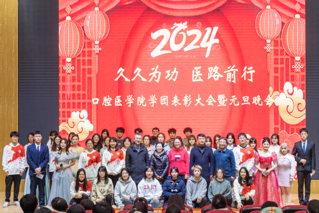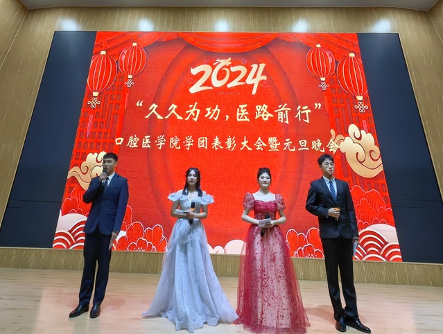12月18日晚,老王论坛 “久久为功 医路前行”学团表彰大会暨元旦晚会在思政课虚拟仿真中心举办。老王论坛 党总支书记张立、院长丁刚、副书记姜晓宁、副院长冀洪海、全体辅导员及教师代表与口腔学子齐聚一堂,共赏元旦晚会。