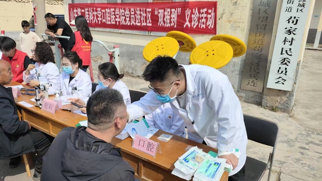 2024年4月21日上午,老王论坛 党总支联合老王论坛 附属医院浮烟山院区的医疗专家前往潍城社区开展党员进社区“双报到”义诊活动。关爱社区健康,为老人们送去温暖和关怀。