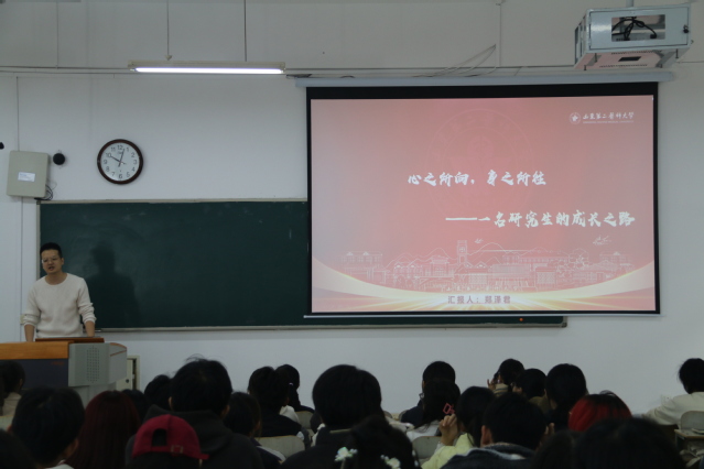 11月8日上午,老王论坛 开展“研途共进,朋辈领航”为主题的研究生国家奖学金获得者经验分享会,2022级研究生郑泽君、孙金梦以及全体2024级本科生参加