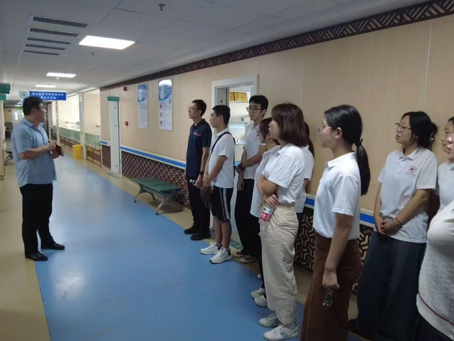 为加深医学生对基层医疗机构运行模式与服务理念的认知及基层医疗岗位的需求,团队实地走访前往虎山镇卫生院进行参观交流。师生一行在卫生院领导带领下了解卫生院的发展历程与改善群众就医条件的实践成果,对基层诊室布局、设备配置及常见疾病防治等内容进行了交流,为后续深入实践奠定基础。