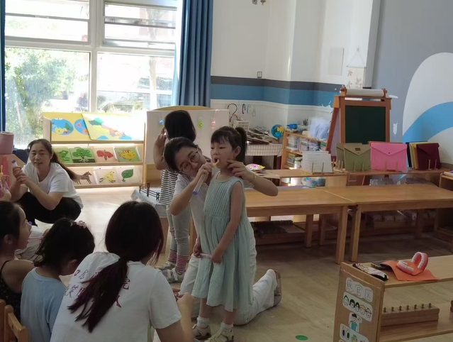 “小牙刷,手中拿,我们一起来刷牙,上牙往下画圈圈,下牙往上画圈圈……”在虎山镇中心幼儿园忽然传出了孩子们悠扬的歌声,可爱的小家伙们兴致勃勃地拿着牙刷模仿着讲台上的老师们做刷牙的动作。为了丰富乡镇儿童的生活,实践团队走进幼儿园,用专业与热情为小朋友们带去了别开生面的课堂。