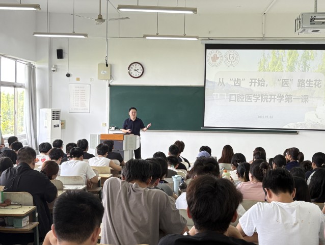 胡勇从医学人才培养出发,强调“立德修身、精技敬业”的重要性。他鼓励同学们树立远大职业理想,锤炼严谨务实的学风,在日常中践行“敬佑生命、甘于奉献”的医学精神,提醒学生严守行为规范,强化责任意识。丁刚从专业学习与科研创新两方面,与同学们分享口腔医学的前沿动态与个人心得。他强调基础学科与临床技能并重,呼吁大家在刻苦钻研专业技术的同时,注重沟通能力和医学人文精神的培养。他还围绕实验室操作、考研深造等实际问题展开讲解,引导学生筑牢诚信考试和诚信科研的行为底线。张劲围绕校园日常管理、宿舍安全、心理健康和应急处理能力提升等内容做了细致讲解,提醒同学们增强自我保护意识,熟练掌握突发事件应对流程,共同维护和谐稳定的学习生活环境。