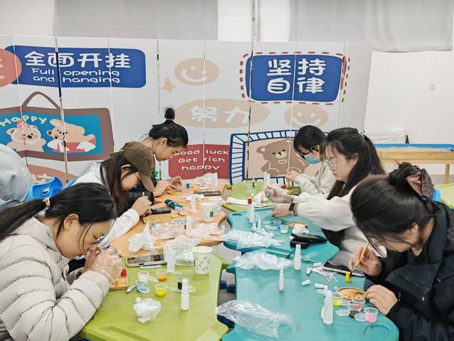 作品完成后,同学们手持独一无二的珐琅作品,在打卡区拍摄单人或集体合影,定格指尖创作,研途同行的温暖瞬间。此次掐丝珐琅绘画制作活动为研究生学子搭建了释放压力、拓展技能、深化情谊的平台。未来学院将继续开展多样化的研究生文体活动,助力口腔学子在研途之上步履从容、绽放光彩,书写更为灿烂的青春华章。