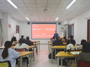 辅导员黄文涛从清廉教育角度入手,要求学生骨干们应时刻保持清醒头脑,坚守道德底线,坚决抵制各种诱惑,做到公正廉洁、以身作则。在处理班级事务、组织校园活动时,要秉持公平公正的原则,不偏袒、不徇私,以清廉之风赢得同学们的信任与尊重。