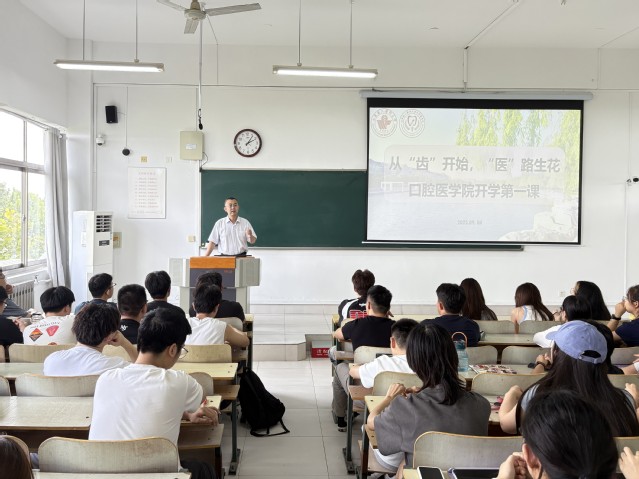 胡勇从医学人才培养出发,强调“立德修身、精技敬业”的重要性。他鼓励同学们树立远大职业理想,锤炼严谨务实的学风,在日常中践行“敬佑生命、甘于奉献”的医学精神,提醒学生严守行为规范,强化责任意识。丁刚从专业学习与科研创新两方面,与同学们分享口腔医学的前沿动态与个人心得。他强调基础学科与临床技能并重,呼吁大家在刻苦钻研专业技术的同时,注重沟通能力和医学人文精神的培养。他还围绕实验室操作、考研深造等实际问题展开讲解,引导学生筑牢诚信考试和诚信科研的行为底线。张劲围绕校园日常管理、宿舍安全、心理健康和应急处理能力提升等内容做了细致讲解,提醒同学们增强自我保护意识,熟练掌握突发事件应对流程,共同维护和谐稳定的学习生活环境。